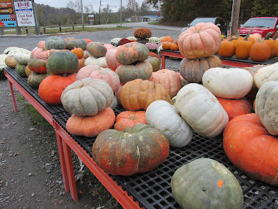 On Monday I drove to the South Fork community, making a brief tour of the discount food store, then turning across the road to the produce market. The sales area outside the store building was bright with fall color in spite of the overcast sky.